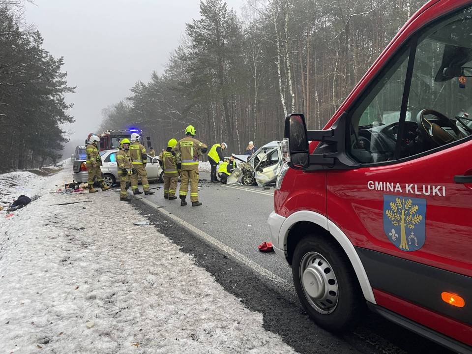 Na miejscu pracują policjanci, strażacy oraz prokurator, którzy ustalają dokładne okoliczności zdarzenia. Droga krajowa pozostaje całkowicie zablokowana, a utrudnienia mogą potrwać jeszcze około dwóch godzin.