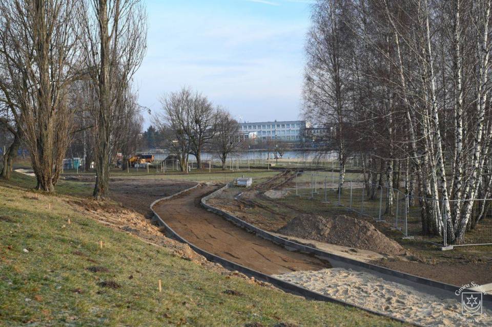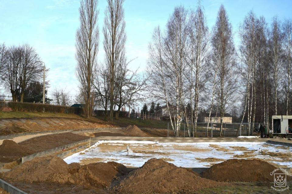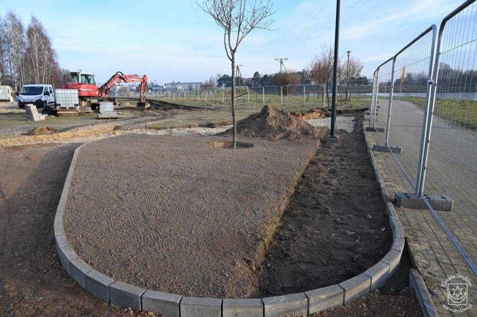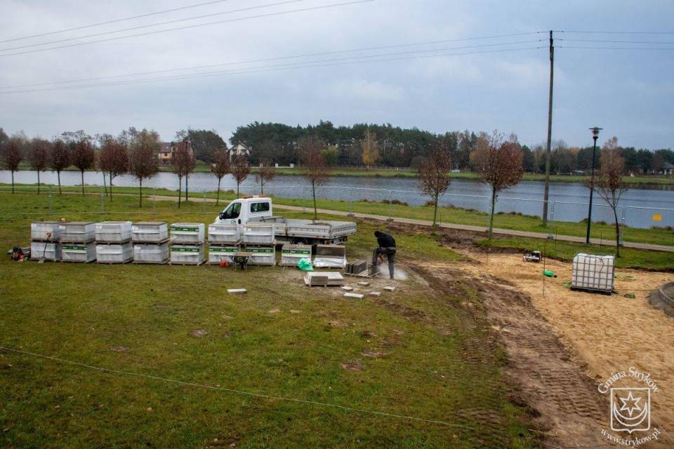 Postępują prace przy zagospodarowaniu terenu wokół zalewu w Strykowie po stronie zachodniej. Łagodna jak dotąd zima pozwala sukcesywnie iść do przodu wykonawcy, czyli wybranej w drodze przetargu firmie GARTE Polska Spółka z o.o.