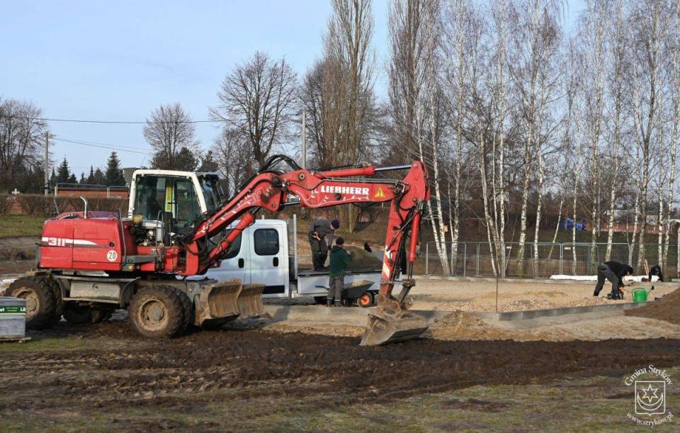 Dzięki wykonywanym podbudowom, montażu obrzeży i krawężników, widoczny jest już zarys elementów zagospodarowania terenu. Trwają prace przy rozbiórkach i demontażach, budowie alejek, budowie boisk oraz przygotowaniu terenu pod siłownię zewnętrzną.