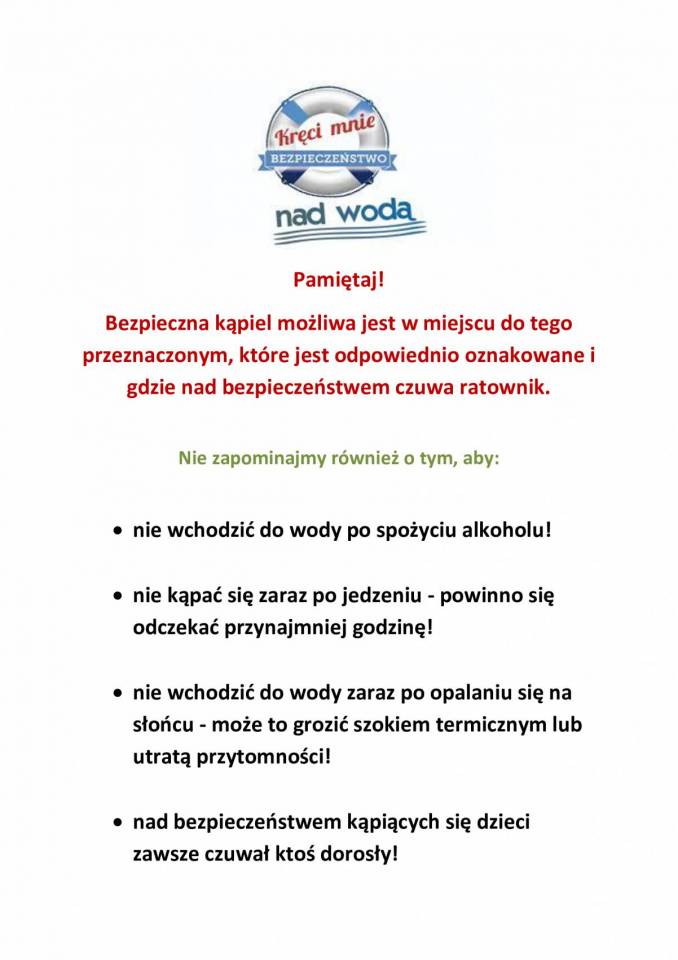 Kolejny raz apelujemy o rozsądek nad wodą. Przypominamy, podstawowe zasady bezpiecznej kąpieli. Uważajcie na siebie nad wodą.
