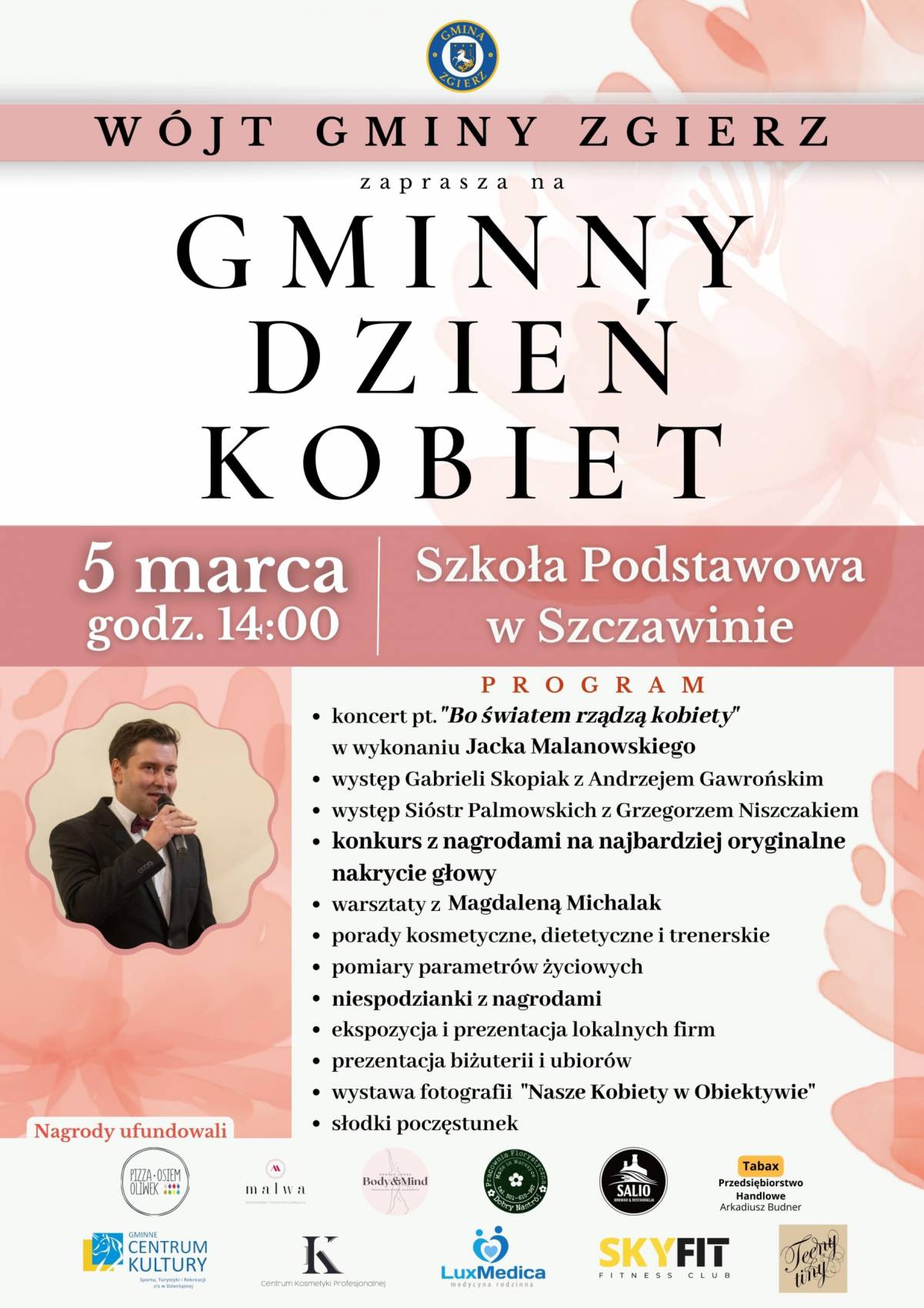 Wójt Gminy Zgierz zaprasza na Gminny Dzień Kobiet, który odbędzie się w niedzielę (5 marca) w Szkole Podstawowej w Szczawinie.